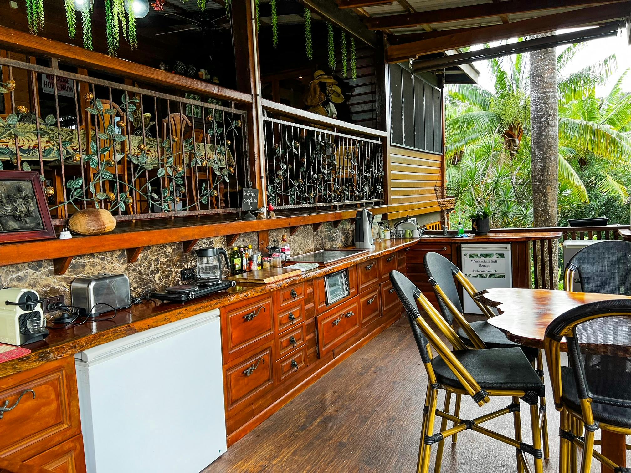 Sitting area out the front of room with easy laundry access. Benefit of room is BBQ outdoor kitchen & open experience for guest with sweeping mountain view in outdoor kitchen.
